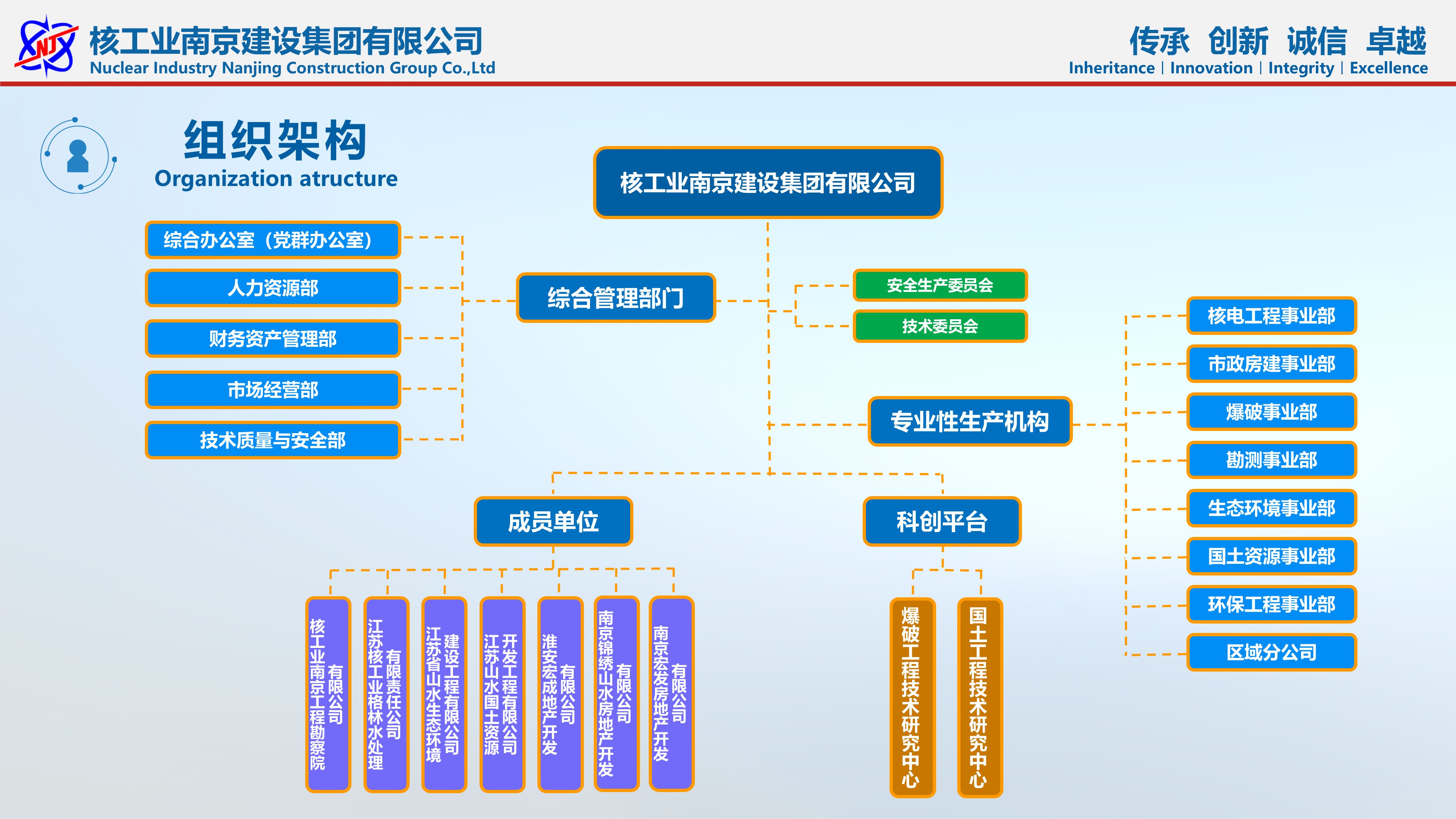 核工业南京建设集团有限公司成立于1986年,前身为成立于1970年的中国人民解放军基本建设工程兵第七〇五部队六〇七团,从一支铀矿探、采、冶地质队成长为服务能源资源安全、自然资源生态环境安全、国土空间开发利用与保护安全、地质灾害防治安全和粮食安全的综合性国有企业。主营业务为工程建设、勘察设计、环保工程、地质灾害治理、生态保护与修复、土地综合整治、高标准农田建设...……